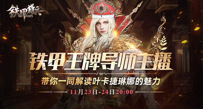 《铁甲雄兵王牌主播导师》本周末20:00-21:00准时开播,将会为大家带来游戏中武将心得、地图战术以及各个模式的玩法。本期主题“新武将•叶卡捷琳娜”。