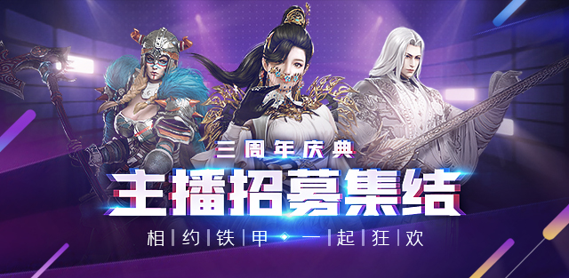 三周年主播招募集结 丰厚奖励等你来拿 2020-05-22 15:21 相约铁甲,一起狂欢!《铁甲雄兵》即将迎来三周年狂欢盛典,无论是相守三载还是初见初知的诸位君主,新的征程即将开启,你们准备好了吗?《铁甲雄兵》周年庆特别招募活动盛大开启,我们给你一个舞台,与千万观众一同狂欢! 【活动时间】 5月23日——6月24日 【报名方式】 虎牙:http://blog.huya.com/news/20047 斗鱼:https://www.douyu.com/cms/new_list/202005/22/15499.shtml 【活动奖励】 直播平台礼物、游戏内平台专属饰品、孙尚香•冠世墨玉、银币x78800