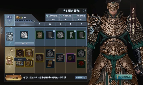 战票S20赛季今日正式开启后,各位玩家上赛季的战星等级将全部清零。本赛季将持续4周时间,期间玩家可以通过军团战、爵位赛以及pve等模式提升战星充能,或者完成周常挑战任务获得战星提升战阶。随着战阶的解锁,战票战令、武将动作、战票头像以及大绷带等战备物资也将同步解锁。