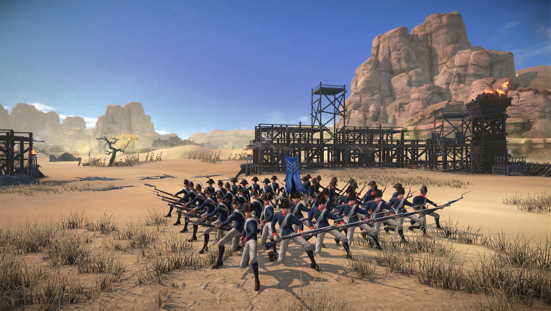 由于枪尖配有尖刺,因此法兰西近卫军的火枪武器也可以作为近战使用,并且对马匹具有恐吓效果!除此之外,法兰西近卫军还可在指定区域结成“空心方阵”,结成空心方阵后士兵将会自动进入拒马状态并且小幅提升防御力,降低移动速度。