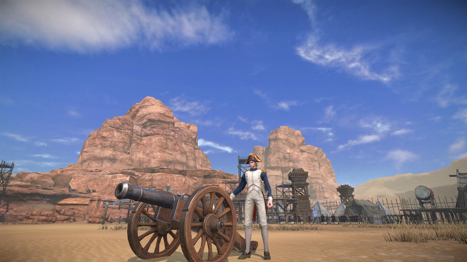 拿破仑初始拥有100%谋略值,且当其在战场上时每秒恢复1%谋略值。拿破仑可在身前召唤一门火炮(不消耗谋略值,且火炮不可被摧毁),并进入操作状态,在操作状态下移动时会缓慢推动火炮同步移动。