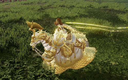 该皮肤同时拥有流光拖尾的效果,当武将移动或纵马疾驰时,流光溢彩的披风随风摇动。策马奔驰留下的光辉,如同极光一般绚丽。