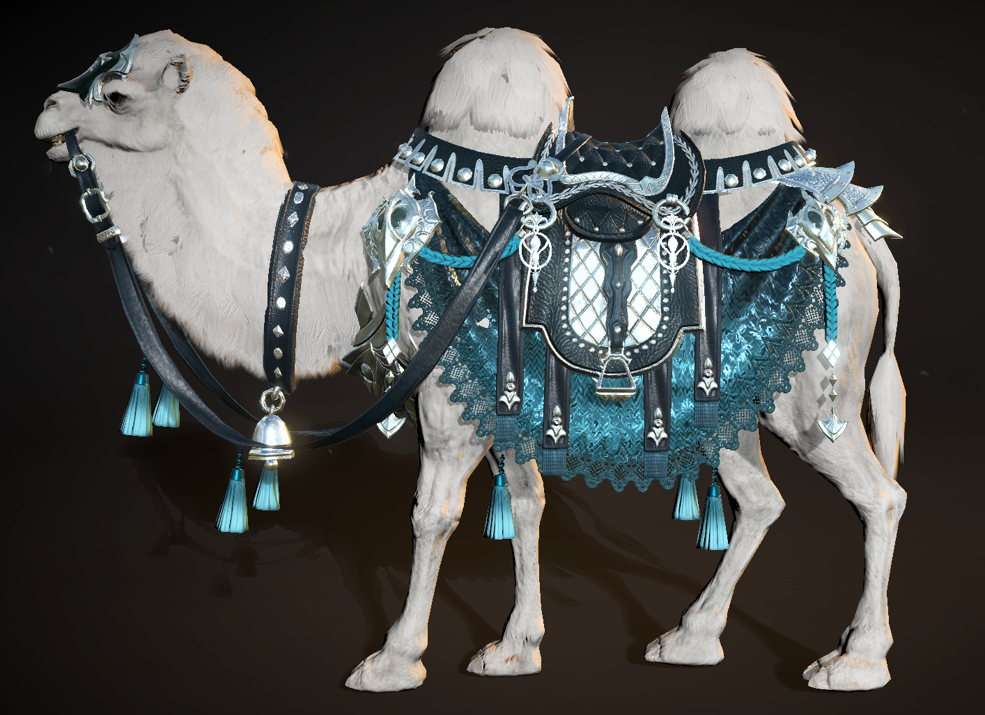 西贝拉的圣城骆驼“凋零之迹”别具一格,它身穿华贵的天界装饰,舞动着优美的长脖子,脖颈下的银色驼铃圣音空灵,极具高贵气质。