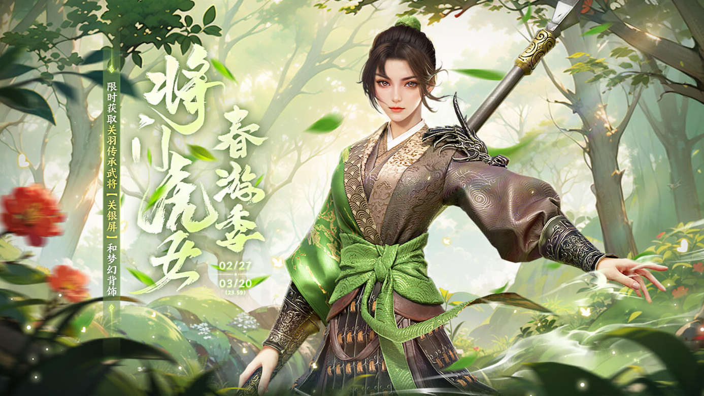 春光无限好,福利迎春来!全新活动即将于2月27日暖心开启,参与活动免费获取关羽传承武将关银屏和众多丰厚福利!