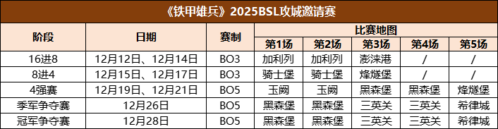 本次BSL攻城邀请赛将直接进入16强争霸阶段,赛事将于12月12日起正式开战,12月28日展开冠军决赛!