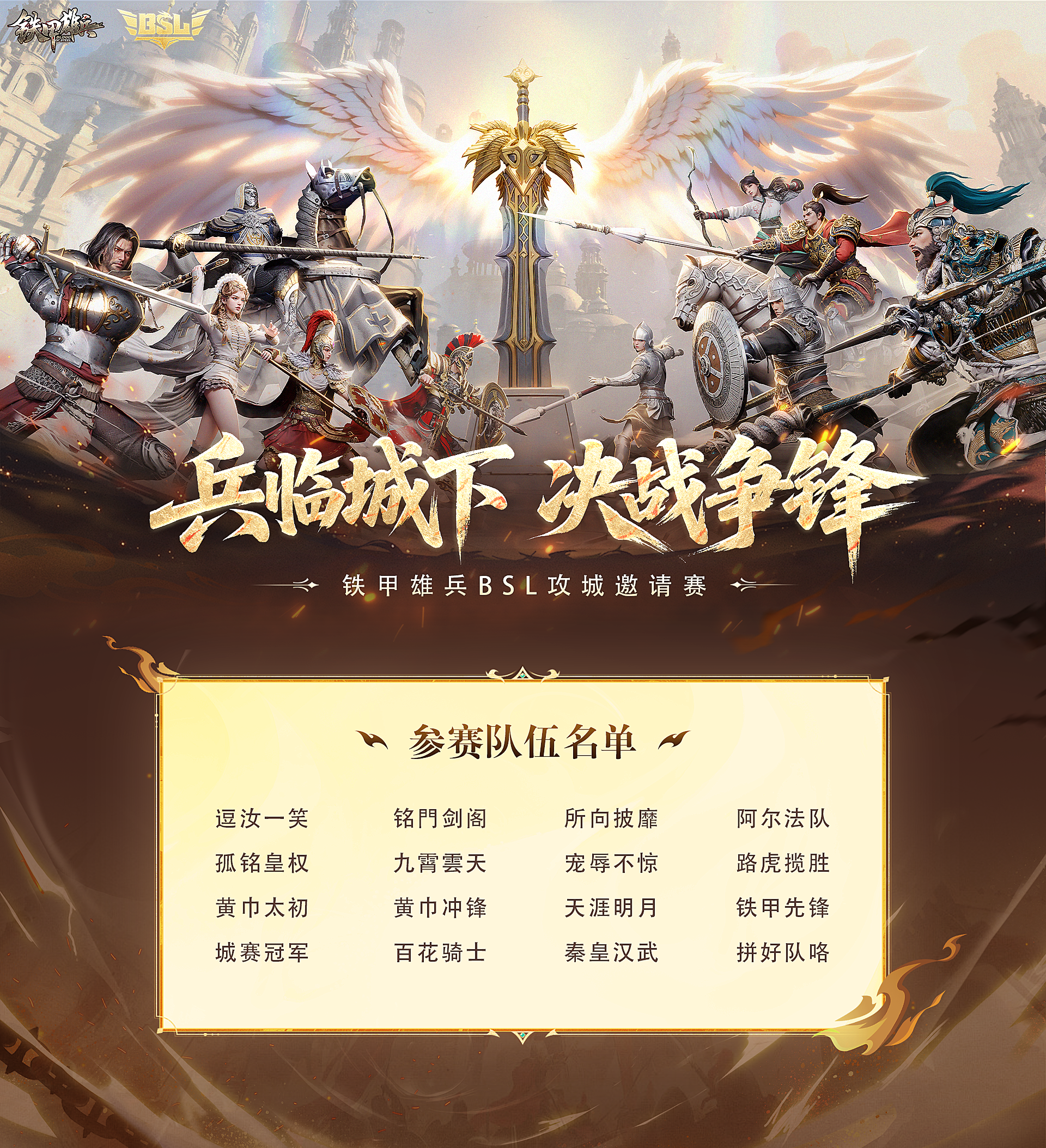 BSL攻城邀请赛名单确认!神秘传承武将爆料