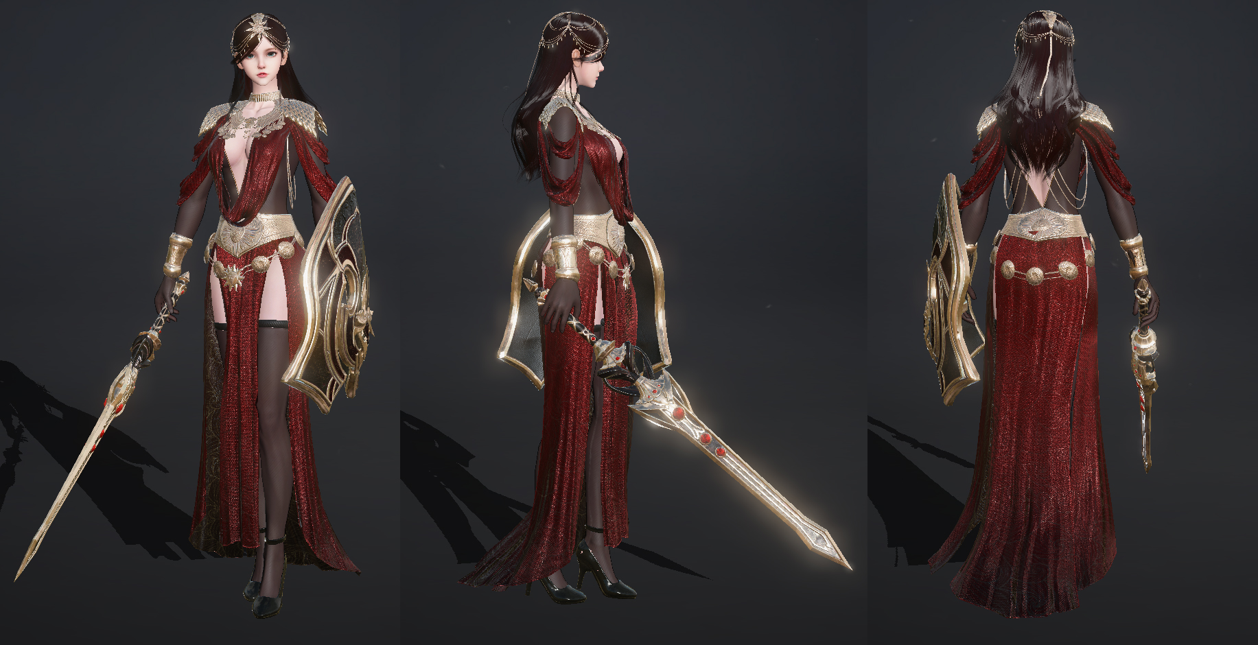 屋大维:黯淡侍女。她们是从罗马帝国中严格选拔出的精英,曳地红裙缀满暗纹,深V剪裁与裙摆冷艳利落。肩甲的羽饰、手持的雕花佩剑碰撞出独属帝国统帅的气场。