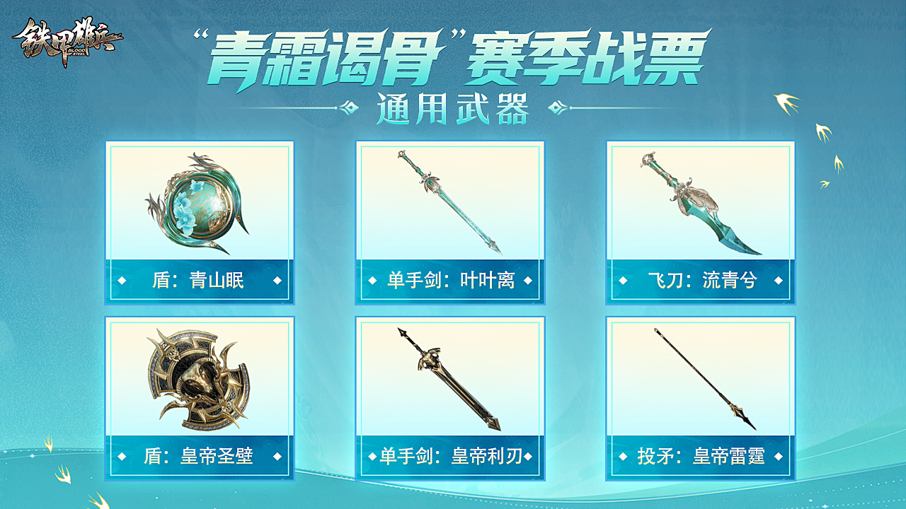 只要与武将可持有的武器类型匹配,都可以佩戴此次战票中的相应武器。本赛季战票通用武器如下: