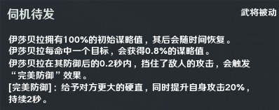 伊莎贝拉在其防御后的一定时间内,若挡住敌人攻击,会触发“完美防御”效果。