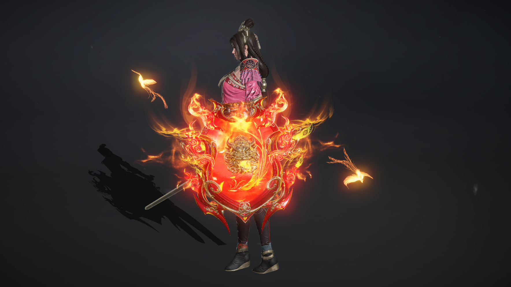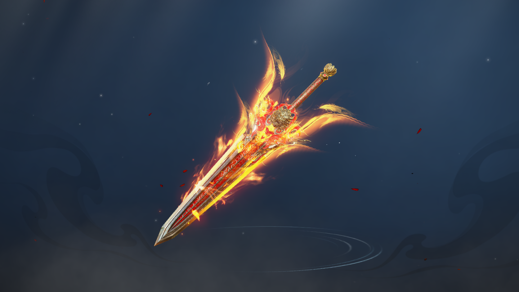 剑成之日,凶水寒潭的煞气被剑身吸附大半,潭水复清,赤霄剑剑身泛着赤金色光泽,出鞘时九道炎柱冲天,既有九婴的凶戾之威,又有金乌的至阳之火,挥舞间如绛霄流转,工匠为其刻上铭文:赤霄。此剑被工匠封存,后偶为一游侠儿所得,游侠儿凭剑斩杀作恶的白蛇,后开创百代基业。