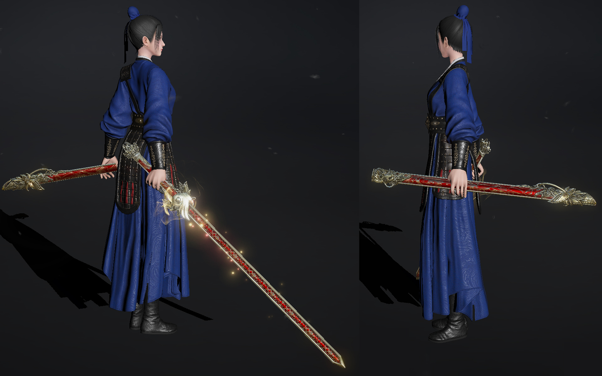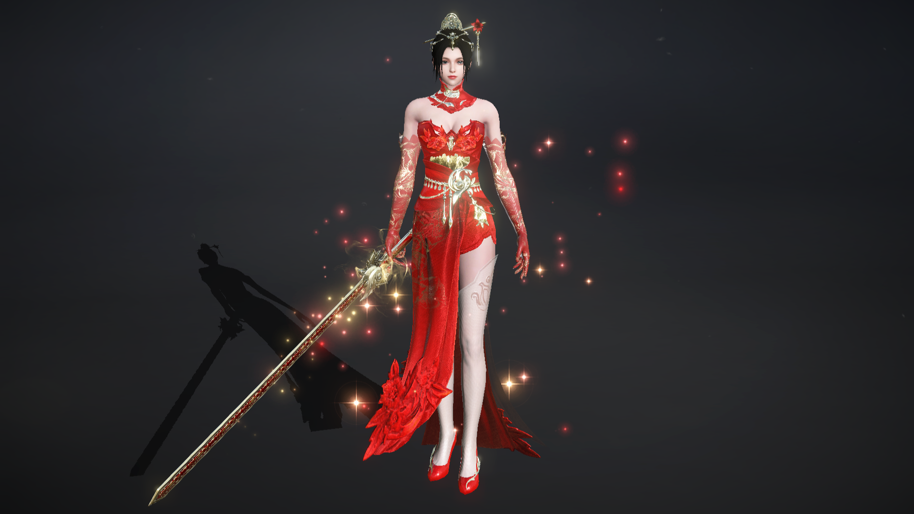购买皮肤还可获得契约通用武器双手剑千秋岁、弩凤烛。千秋岁剑身修长,镶嵌有琳琅红玉,闪烁细碎金光。剑鞘以朱红为底,辅以古铜花纹,威严雅致。