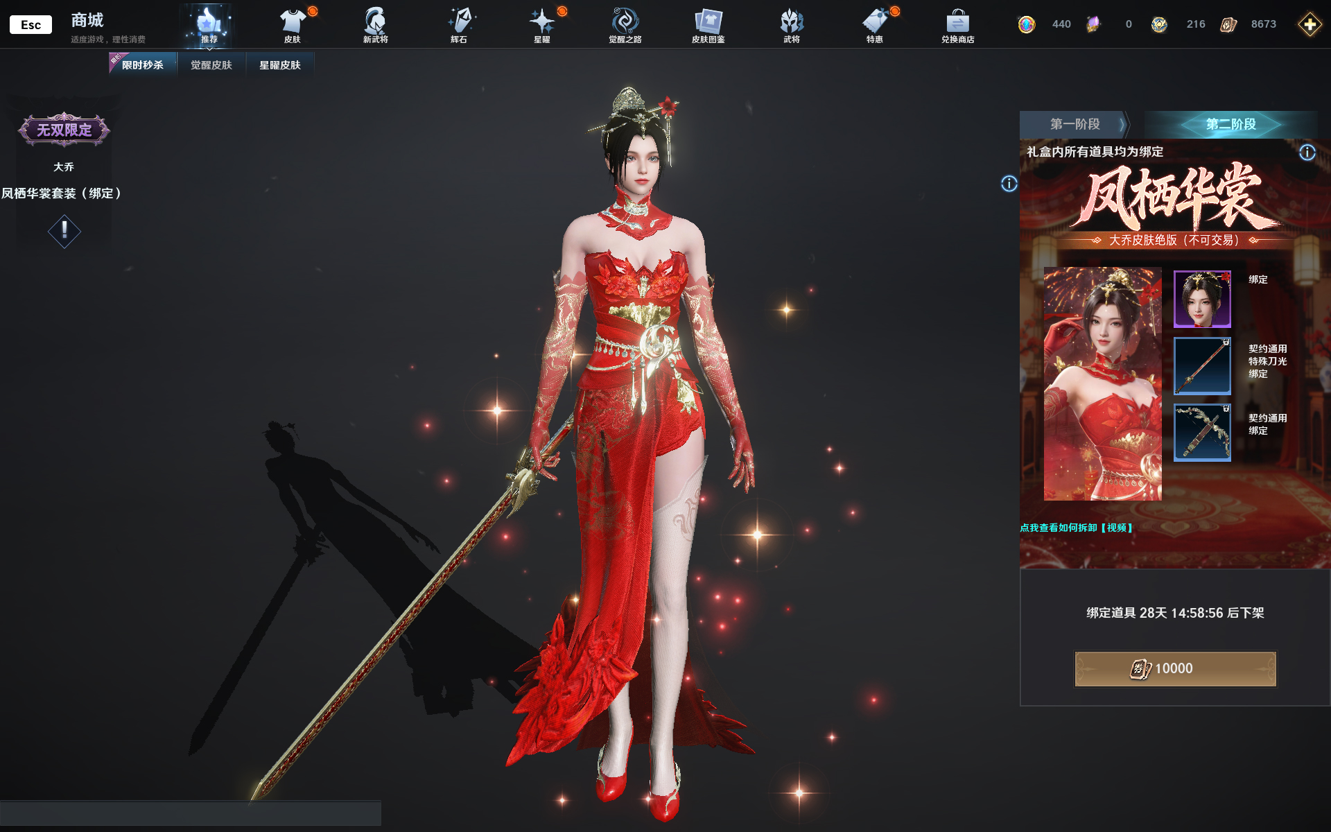 在非绑定皮肤售卖环节结束后,开启绑定款皮肤的售卖,不限量供应。两款皮肤售价均为10000点券,且售卖结束后,永不返场,绝版限定!