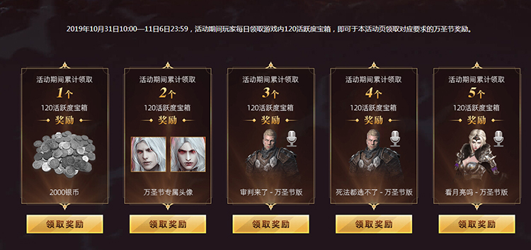 10月31日起至11月6日,万圣福利大放送!每日登录游戏领取120活跃度宝箱,其中累计获得2个120活跃度宝箱即可兑换领取万圣节日限定头像,除此之外还有趣味万圣语音等惊喜等待各位前来领取!这个万圣节让我们一起鬼混享受节日欢乐吧!