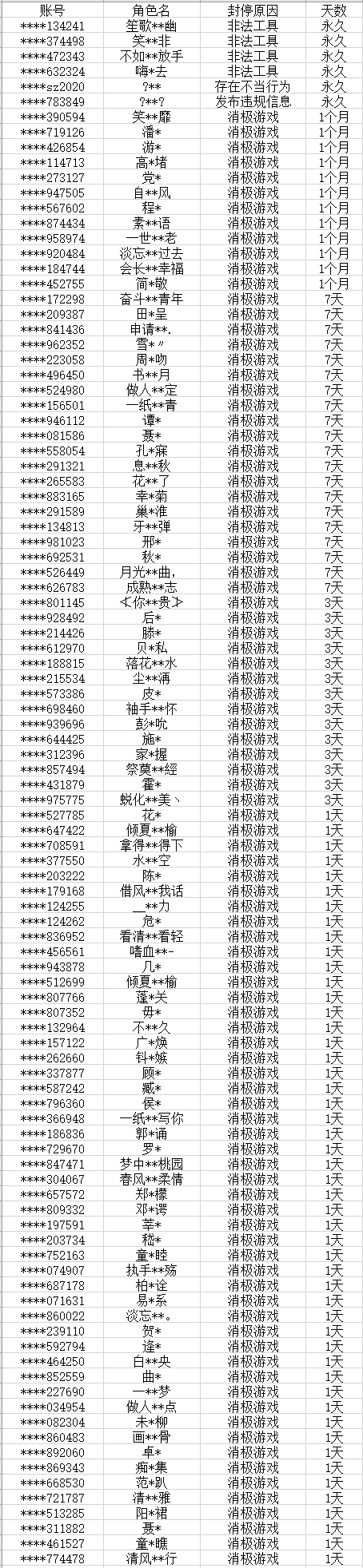以下为本次公布的封停名单: