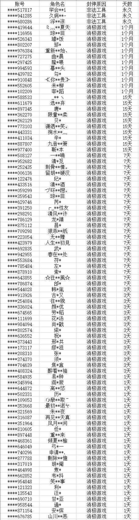 以下为本次公布的封停名单: