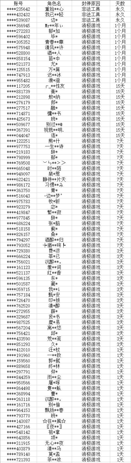 以下为本次公布的封停名单: