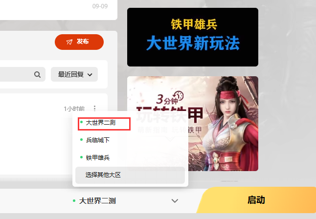(注意在大世界测试版本下,玩家无法进入铁甲雄兵、兵临城下服务器)