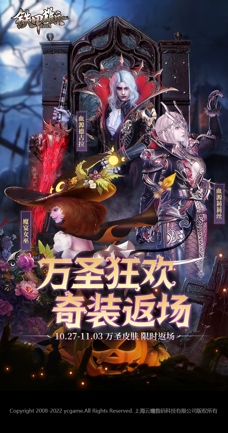1.万圣节限定皮肤宝箱限时上架(巴托里·魔女巫术宝箱;鲍德温一世·德古拉宝箱;斯蒂芬妮·血源莉莉丝宝箱)