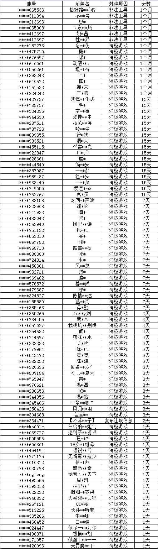 以下为本次公布的封停名单: