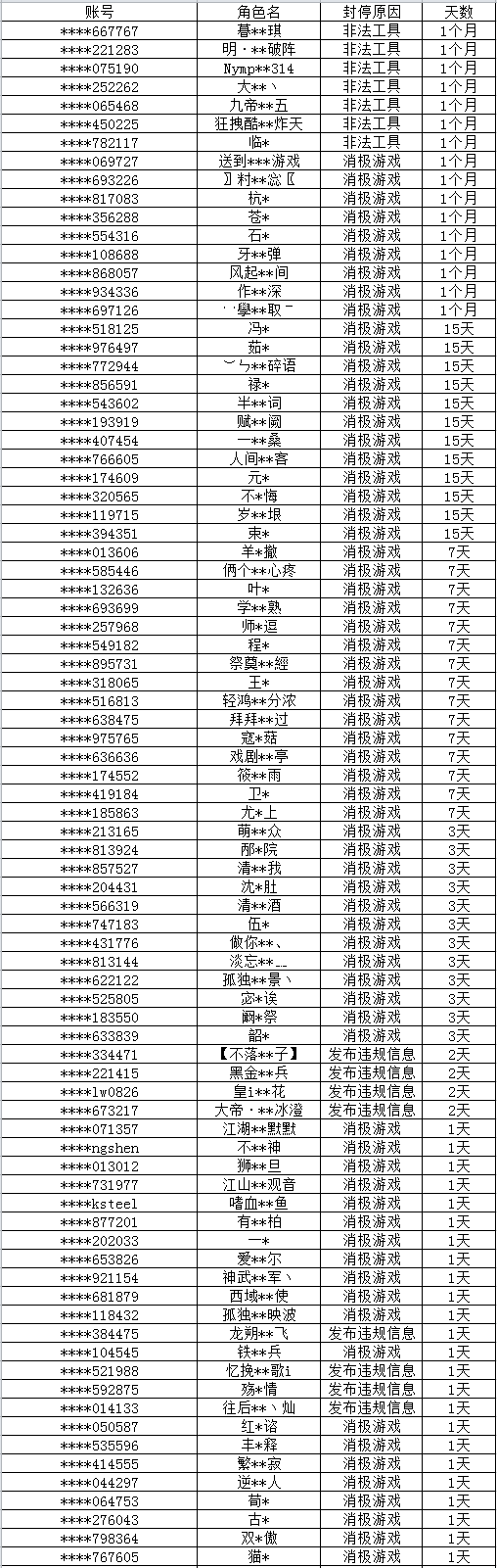 为保证游戏的公平与公正,运营团队会在及时对辅助、外挂打击之外,针对游戏过程中存在消极游戏、恶意参于爵位赛的角色也将进行惩罚,惩罚名单会定期在社区发布近期封停名单公告。