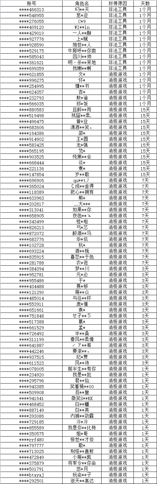以下为本次公布的封停名单: