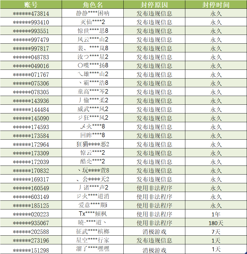 为保证游戏的公平与公正,运营团队会在及时对辅助、外挂打击之外,针对游戏过程中存在消极游戏、恶意参于爵位赛的角色也将进行惩罚,惩罚名单会定期在社区发布近期封停名单公告。
