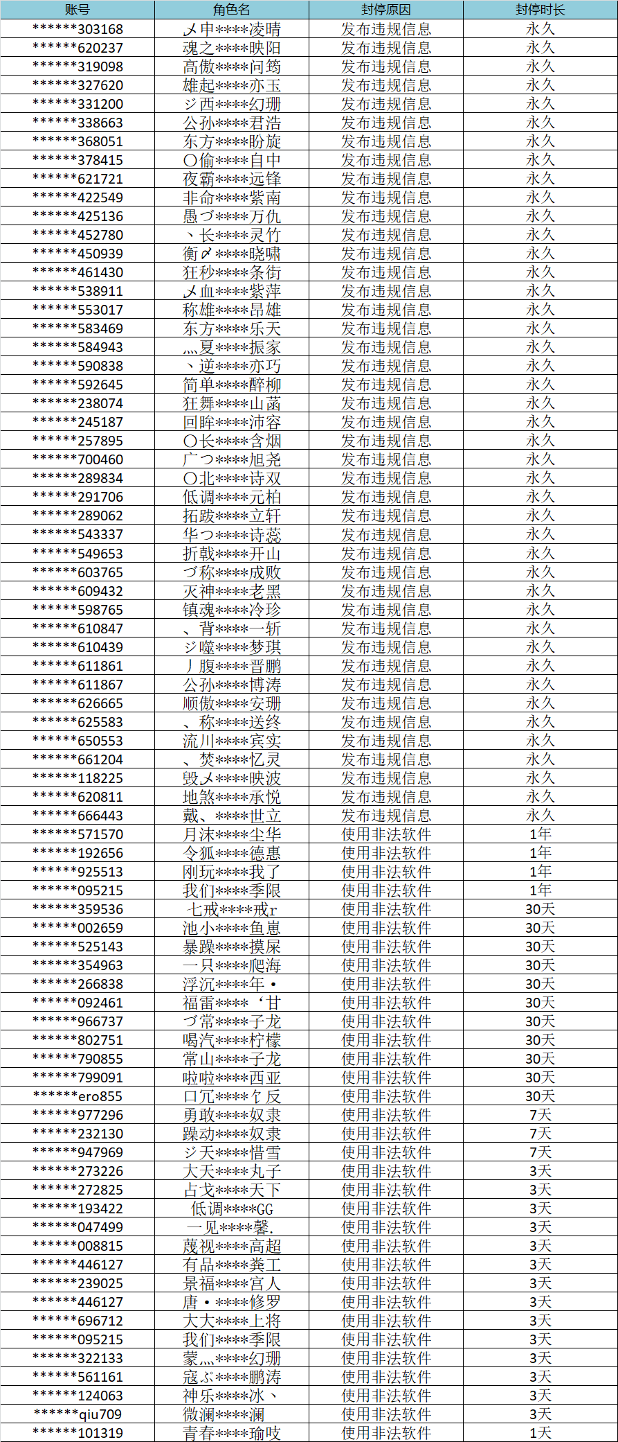 为保证游戏的公平与公正,运营团队会在及时对辅助、外挂打击之外,针对游戏过程中存在消极游戏、恶意参于爵位赛的角色也将进行惩罚,惩罚名单会定期在社区发布近期封停名单公告。