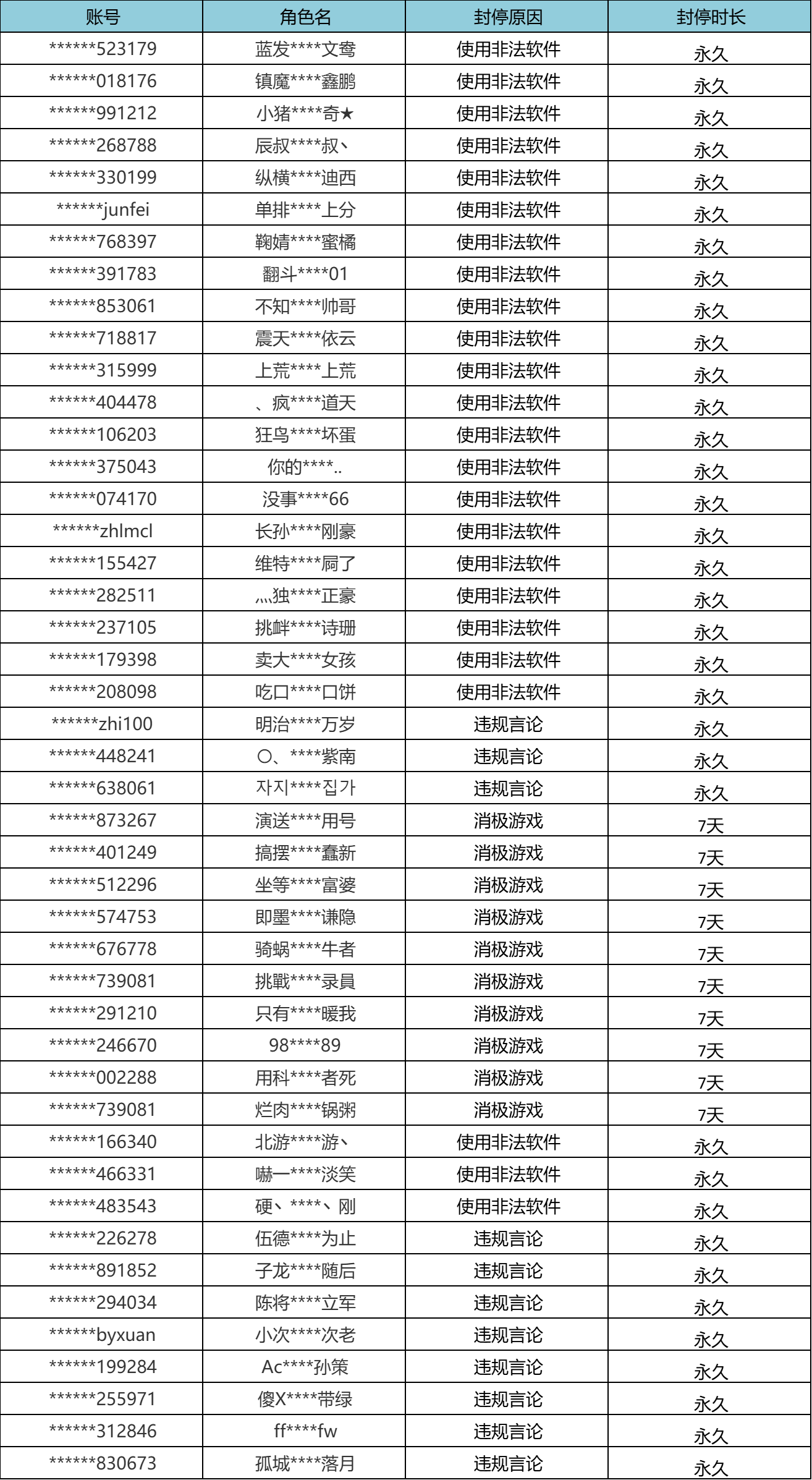 以下为本次公布的封停名单: